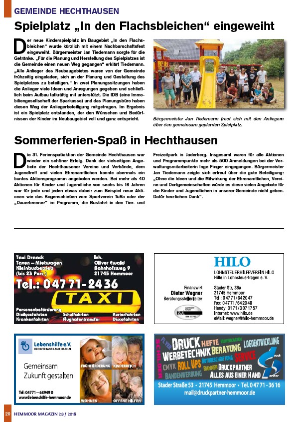 der Kinder im Neubaugebiet voll und ganz entspricht. Bürgermeister Jan Tiedemann freut sich mit den Anliegern