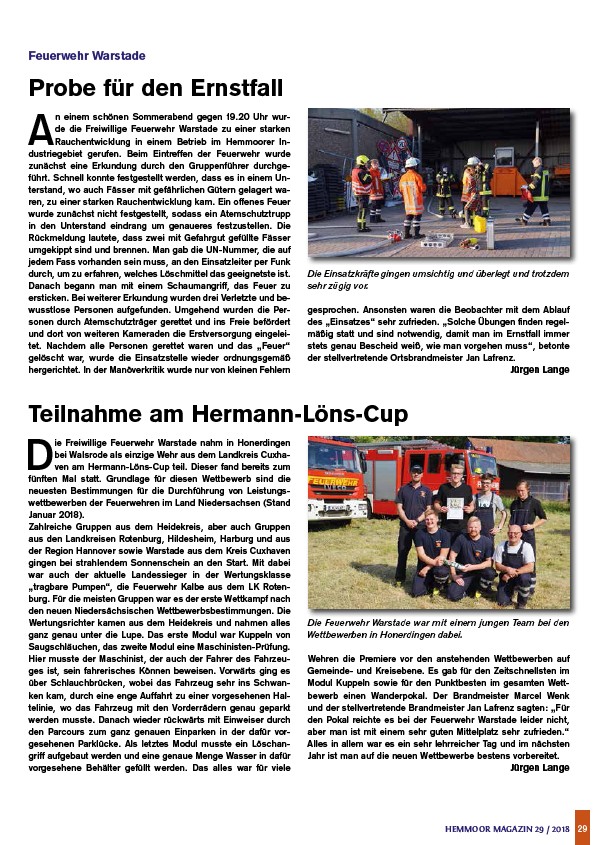 Die Freiwillige Feuerwehr Warstade nahm in Honerdingen